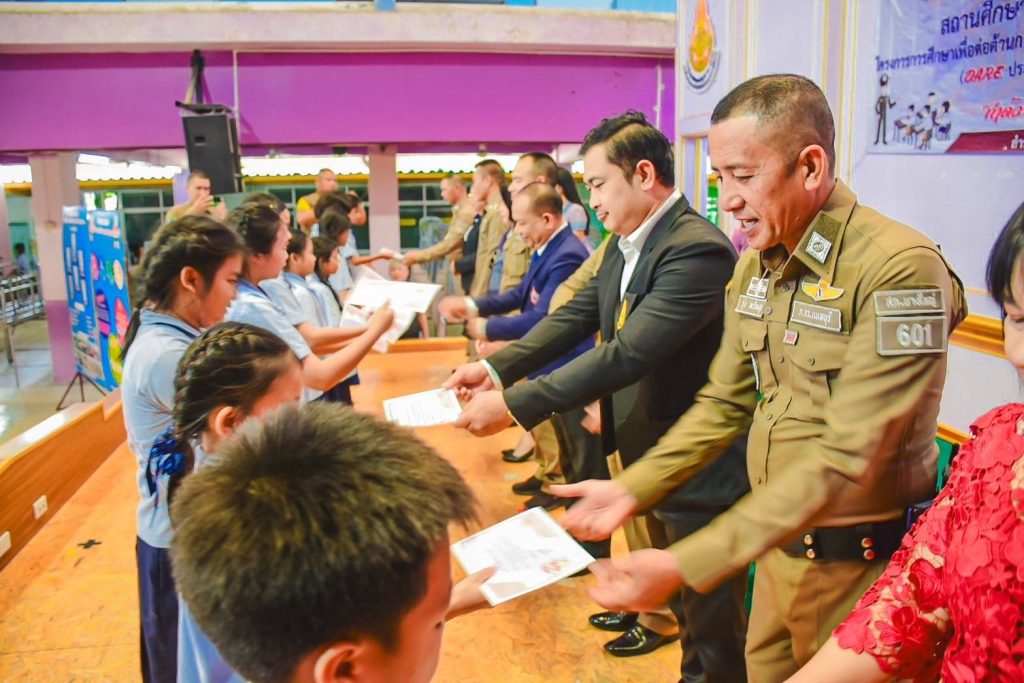 ครูตำรวจแดร์ สภ.บางใหญ่ ร่วมกับคณะครูและผู้บริหาร รร.เฉลิมพระเกียรติ มอบประกาศนียบัตร แก่นักเรียนจำนวน 250 คน ซึ่งผ่านการอบรม ตามโครงการ การศึกษาเพื่อต่อต้านการใช้ยาเสพติดในเด็กนักเรียน (โครงการ D.A.R.E.ประเทศไทย)