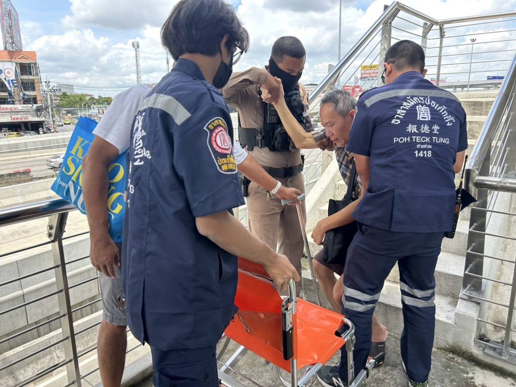 ปฏิบัติหน้าที่สายตรวจ ได้รับแจ้งเหตุขอความช่วยเหลือชายชราลงจากสะพานลอยไม่ได้