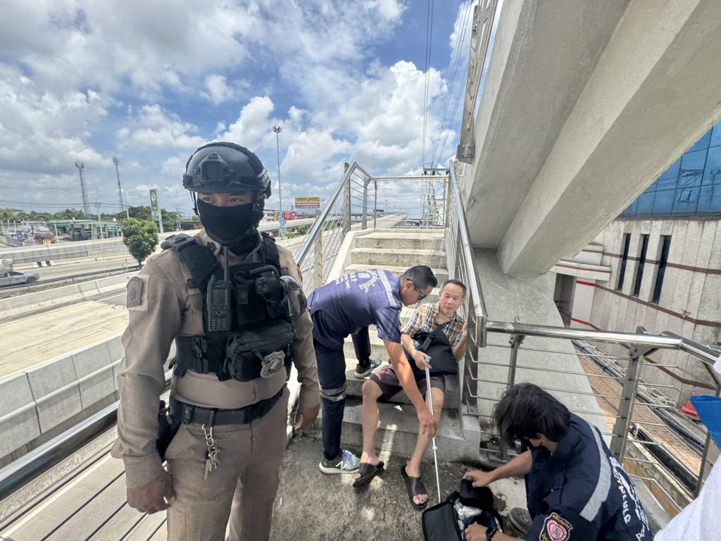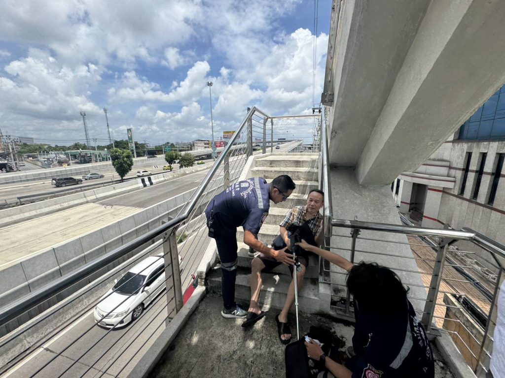 วันนี้ 9 ก.ย 2568 เวลาประมาณ 11:40 น. ขณะที่ จ.ส.ต.ศุภชัย โพธิ์ศรีขาม และ ส.ต.ท.พงศกร วงศ์กาวี เจ้าหน้าที่ตำรวจ สภ.บางใหญ่ ปฏิบัติหน้าที่สายตรวจ ได้รับแจ้งเหตุขอความช่วยเหลือชายชราลงจากสะพานลอยไม่ได้จึงได้เข้าไปตรวจสอบบริเวณพื้นที่ดังกล่าวพบชายชราซึ่งมีโรคประจำตัวไม่สามารถลงจากสะพานลอยจึงได้ทำการเข้าช่วยเหลือเบื้องต้นและได้แจ้งกู้ภัยบางใหญ่ ช่วยกันพยุงชายชราลงมาอย่างปลอดภัยและนำตัวส่งโรงพยาบาลเพื่อทำการรักษาต่อไป