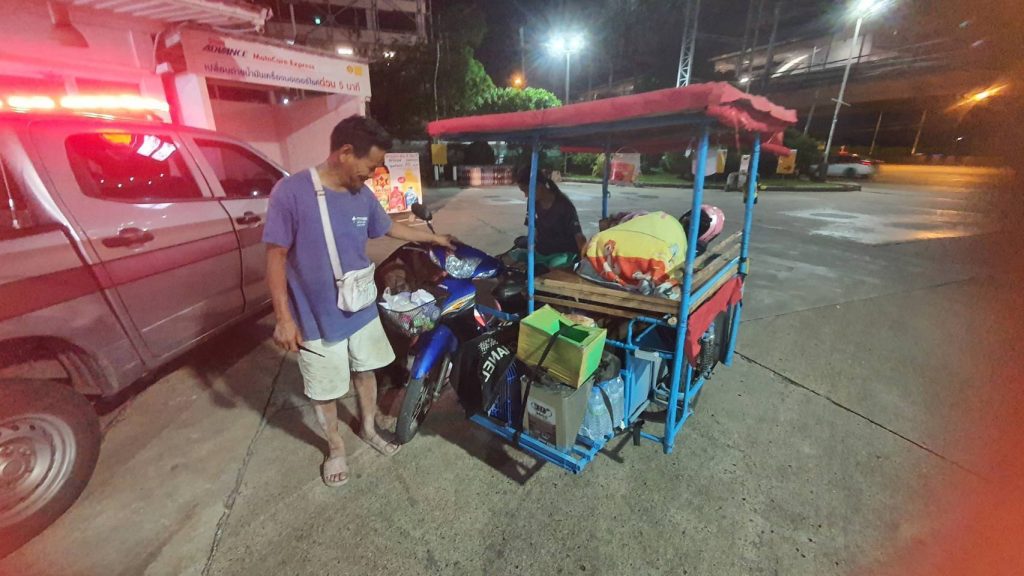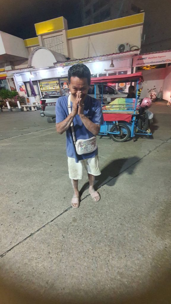 (*) ตาม วันเวลาดังกล่าว บางใหญ่ 20 พร้อมกำลังสายตรวจรถจักรยานยนต์ออกตรวจพื้นที่ถึงบริเวณหน้าปั๊มน้ำมันเชลล์ถนนรัตนาธิเบศร์พบนายสุทิน(ทราบชื่อภายหลัง)เข็นรถสามล้อพ่วงมามีลูกน้อย 3 คนและภรรยาซ้อนท้ายได้รับอุบัติเหตุขาหักเข้ามาขอความช่วยเหลือเนื่องจากรถน้ำมันเครื่องแห้งขับเคลื่อนไม่ได้มีเงินไม่เพียงพอซึ่งเจ้าตัวแจ้งว่ามาจากสระบุรีจะไปขายของหน้าโรงพยาบาลรามาฯ จนท.ตำรวจจึงทำการให้ความช่วยเหลือซื้อน้ำมันเครื่องจากปั้มเติมเพื่อให้รถจยย.ขับขี่เดินทางได้ต่อไป