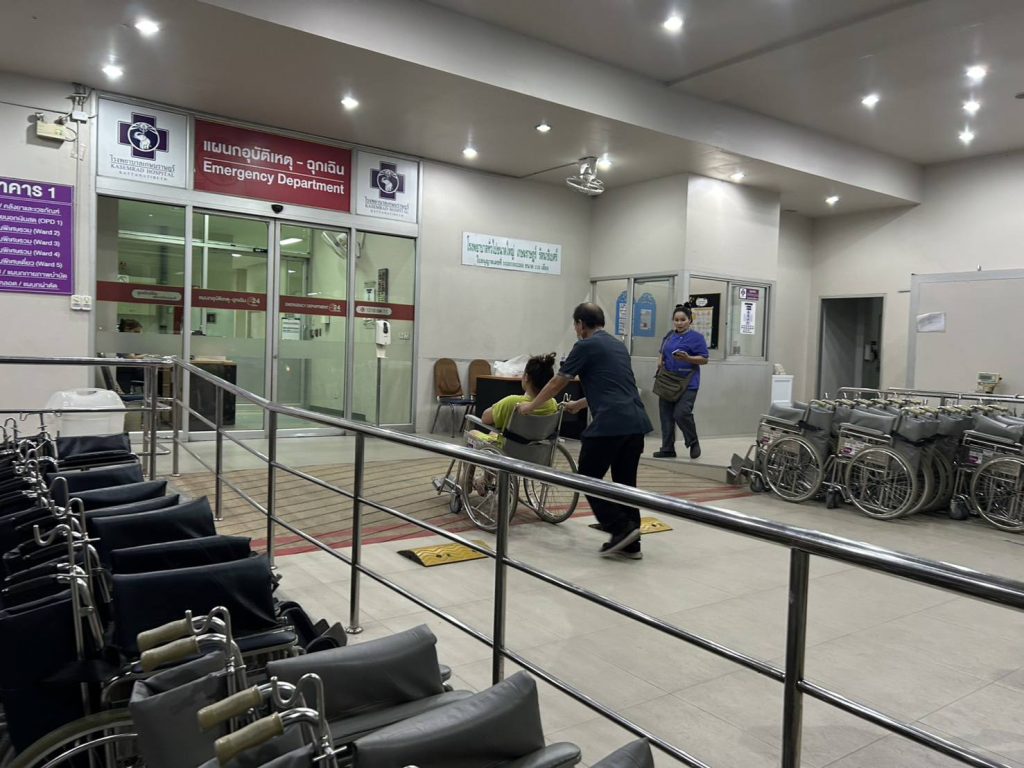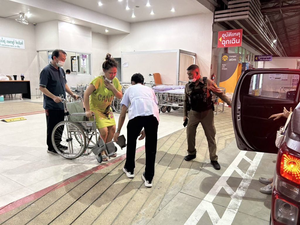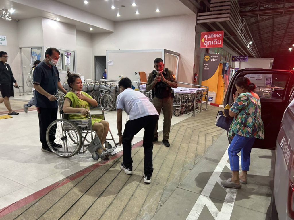พบประชาชนยืนโบกรถขอความช่วยเหลือ มีอาการหายใจไม่สะดวก มือชาเท้าชา คล้ายจะช็อคหมดสติ เจ้าหน้าตำรวจชุดให้การช่วยเหลือ จึงนำตัวส่งโรงพยาบาลเกษมราษฎร์ รัตนาธิเบศร์เป็นที่เรียบร้อย