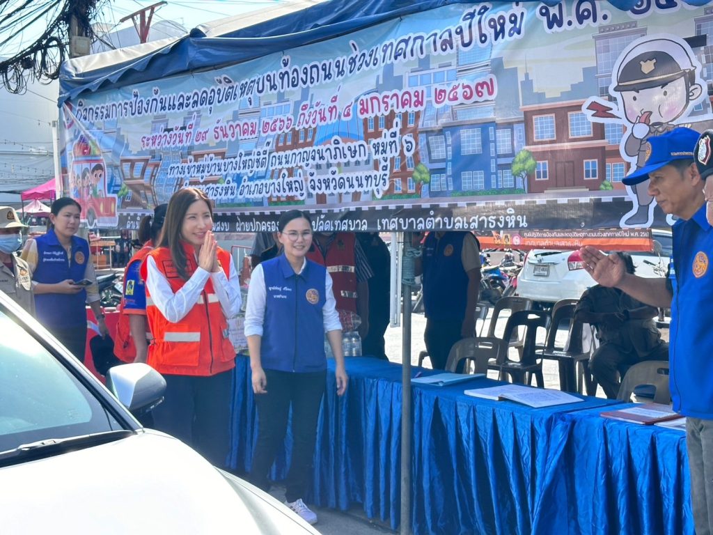 พล.ต.ต.ปรารถนา แผ่นผา ผบก.ภ.จว.นนทบุรี (นนทบุรี 1) ,นางสาวปาณิสรา กาญจนะจิตรา รองผู้ว่าราชการจังหวัดนนทบุรี ตรวจจุดบริการประชาชน