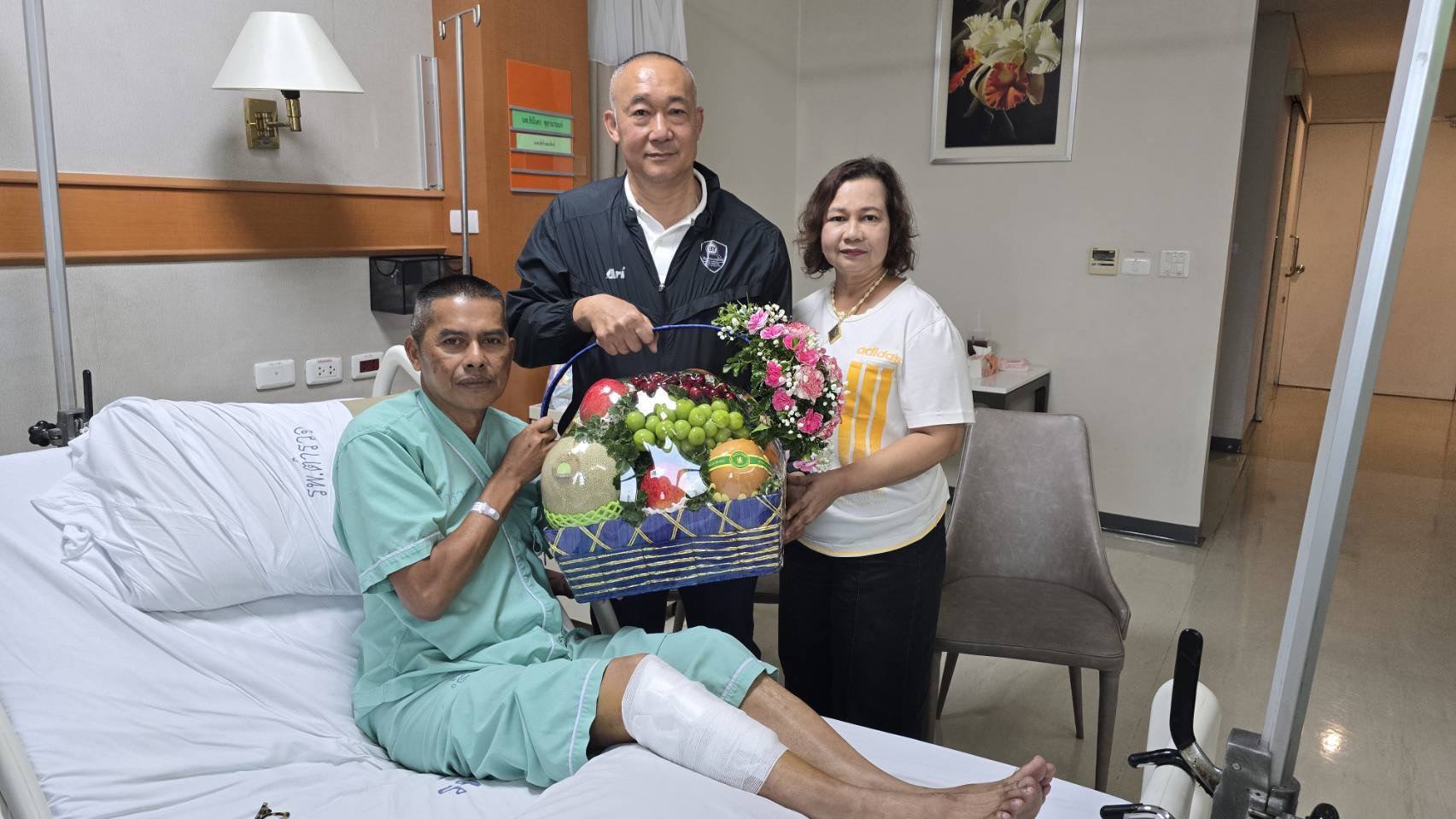 พ.ต.อ.สิรภพ อนุศิริ ผกก.สภ.บางใหญ่ พร้อมด้วยแม่บ้านตำรวจ สภ.บางใหญ่ นำกระเช้าเยี่ยม พร้อมสอบถามอาการ และให้กำลังใจ ร.ต.ท.จักกรี ผลาสิงห์ รองสว.จร.สภ.บางใหญ่