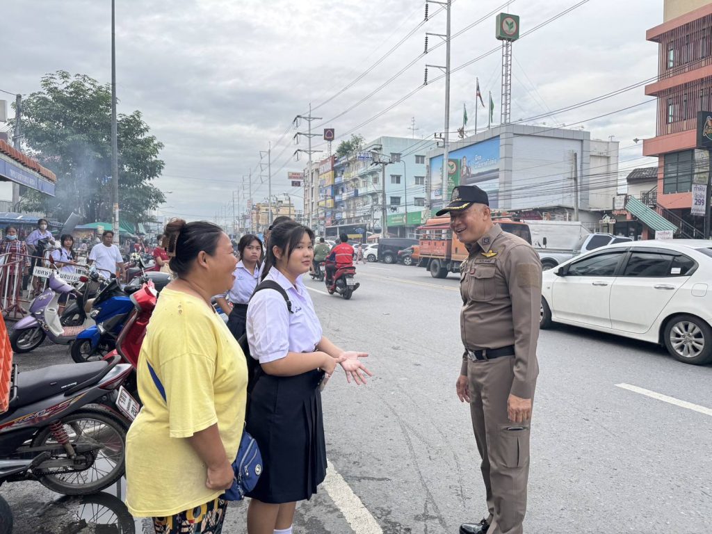 ว.4 อำนวยความสะดวกการจราจร หน้าโรงเรียนเตรียมอุดมศึกษาพัฒนานนทบุรี ถนนบางศรีเมือง – วัดโบสถ์ดอนพรม ต.บางเลน อ.บางใหญ่ จ.นนทบุรี และอำนวยความสะดวกแก่เด็กนักเรียนที่เดินทางด้วยรถยนต์สองแถว พร้อมตรวจเยี่ยมพูดคุยแม่ค้าหน้าตลาดดอนพรม ประชาสัมพันธ์ ผู้ขังขี่รถจักรยานยนต์รับจ้างปากซอย ให้ช่วยสอดส่อง แจ้งเหตุ ดูแลความปลอดภัย และประชาสัมพันธ์ คณะครูอาจารย์ที่มาบริการ นักเรียนบริเวณหน้าโรงเรียน สอบถามสภาพปัญหาต่างๆ ที่ต้องการให้เจ้าหน้าที่ตำรวจเข้าไปดูแลความปลอดภัย และการจราจร ประสานความร่วมมือด้านการจราจรกับเจ้าหน้าที่ตำรวจจราจร ที่อำนวยความสะดวกการจราจรด้านหน้าโรงเรียน ให้ประสานการปล่ออยรถระหว่างหน้าโรงเรียนกับปากซอย เนื่องจาก ถนนปากซอยอยู่ในความรับผิดชอบ สภ.บางใหญ่ ส่วนโรงเรียนเป็นพื้นที่ สภ.บางศรีเมือง ให้ทำงานประสานสอดคล้องกัน เพื่ออำนวยความสะดวกแก่ผู้ปกครอง เด็กนักเรียน และประชาชน