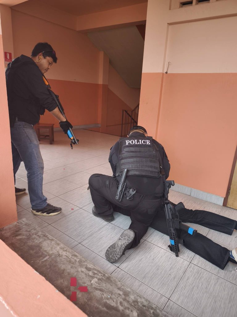 ทั้งนี้ ได้มีการซักซ้อม แนวทางปฏิบัติ “หนี – ซ่อน – สู้” เพื่อให้ครู นักเรียน และบุคลากรสามารถเอาตัวรอดเบื้องต้นได้อย่างถูกต้อง ดังนี้