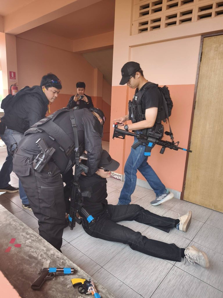 โดยจำลองสถานการณ์ คนร้ายพร้อมอาวุธปืนบุกเข้ามาภายในโรงเรียน มีพฤติการณ์จะทำร้ายครู นักเรียน และบุคลากรทางการศึกษา เจ้าหน้าที่ได้ทำการฝึกซ้อมตามขั้นตอนการระงับเหตุ การอพยพนักเรียนไปยังจุดปลอดภัย การเข้าควบคุมสถานการณ์ และการช่วยเหลือผู้บาดเจ็บ