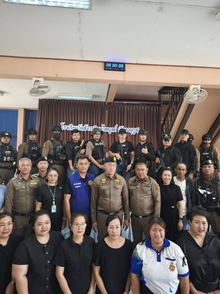 ได้ดำเนินการ ซักซ้อมแผนเผชิญเหตุกรณีคนร้ายใช้อาวุธปืนบุกเข้ามาก่อเหตุภายในสถานศึกษา ณ โรงเรียนวัดสังวรพิมลไพบูลย์ (จันทานุกูล) ตำบลบางใหญ่ อำเภอบางใหญ่ จังหวัดนนทบุรี