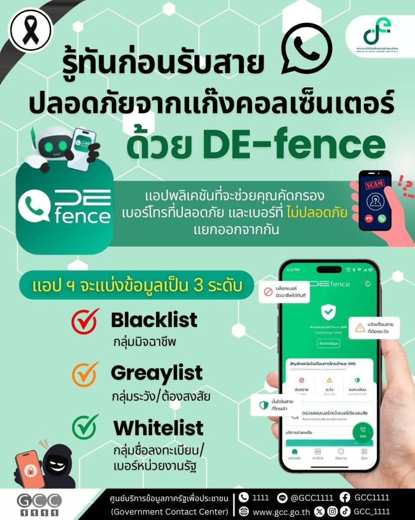 รู้ทันก่อนรับสาย! ปลอดภัยจากแก๊งคอลเซ็นเตอร์ ด้วยแอป “DE-fence”