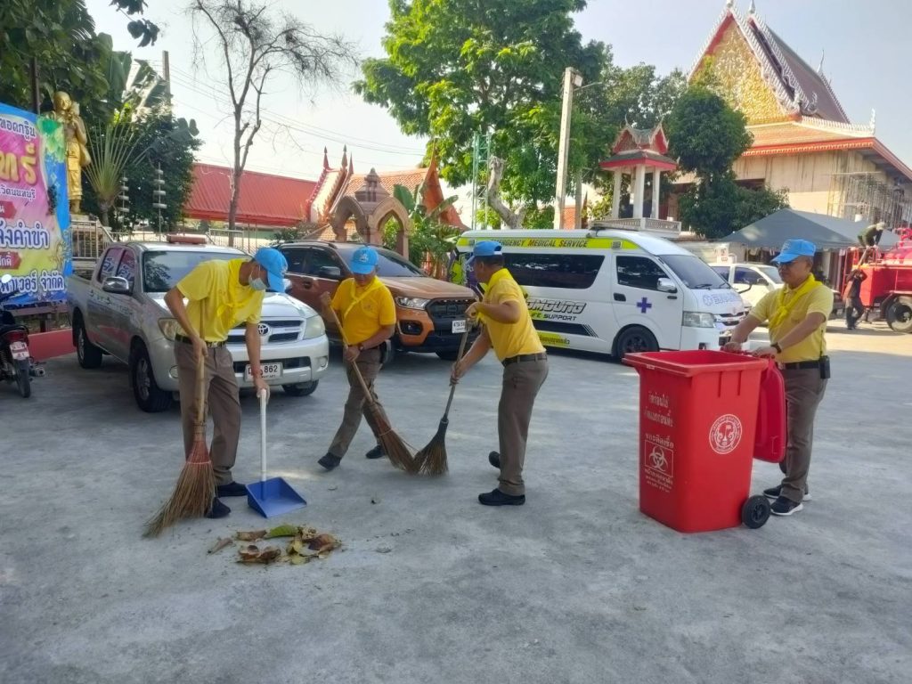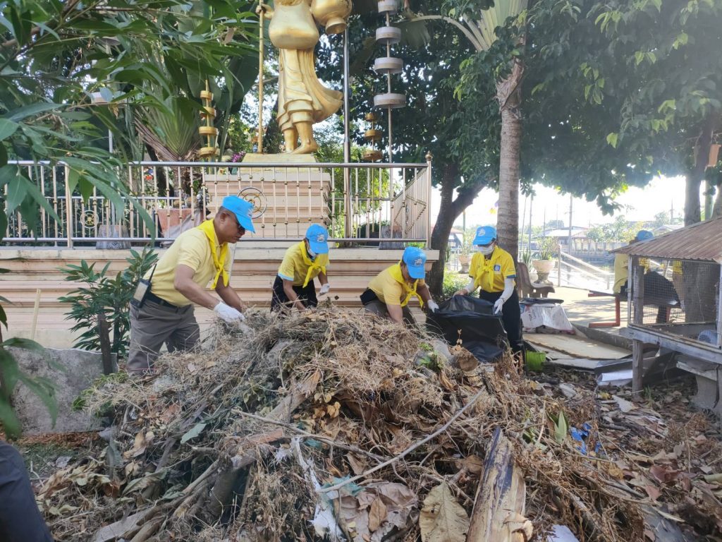 ร่วมกันทำความสะอาด ล้างพื้น เก็บกวาด ขนขยะ โดยรอบบริเวณวัดอินทร์ หมู่ 2 ต.เสาธงหิน อ.บางใหญ่ จ.นนทบุรี เป็นที่เรียบร้อย