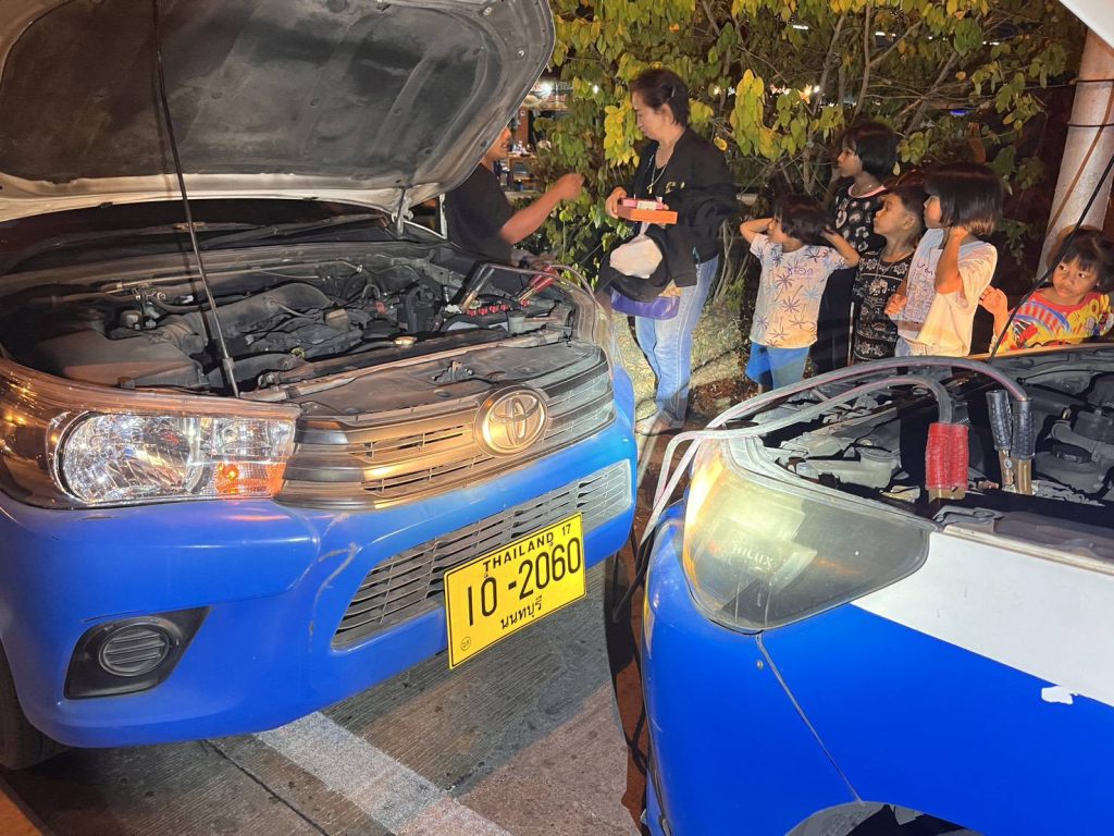 ร.ต.อ.อรรถกร คร้ามสมอ รอง สวป.สภ.บางใหญ่ ปฏิบัติหน้าที่เวรสายตรวจรถยนต์ (บางใหญ่ 20) และสายตรวจ จยย.123 ขณะออกตรวจบริเวณสี่แยกไฟแดงบางพลูถนนรัตนาธิเบศร์พบเห็นรถยนต์ 2 แถว แบตเตอรี่หมดสตาร์ทไม่ติดการจราจรติดขัดจึงได้จอดทำการช่วยเหลือนำสายพ่วงจากรถ 2 แถว อีกคันทำการช่วยเหลือรถยนต์คันดังกล่าวจนสตาร์ทติดขับเคลื่อนได้