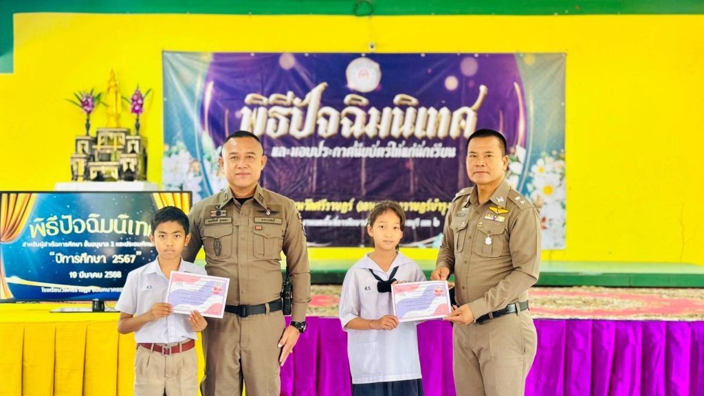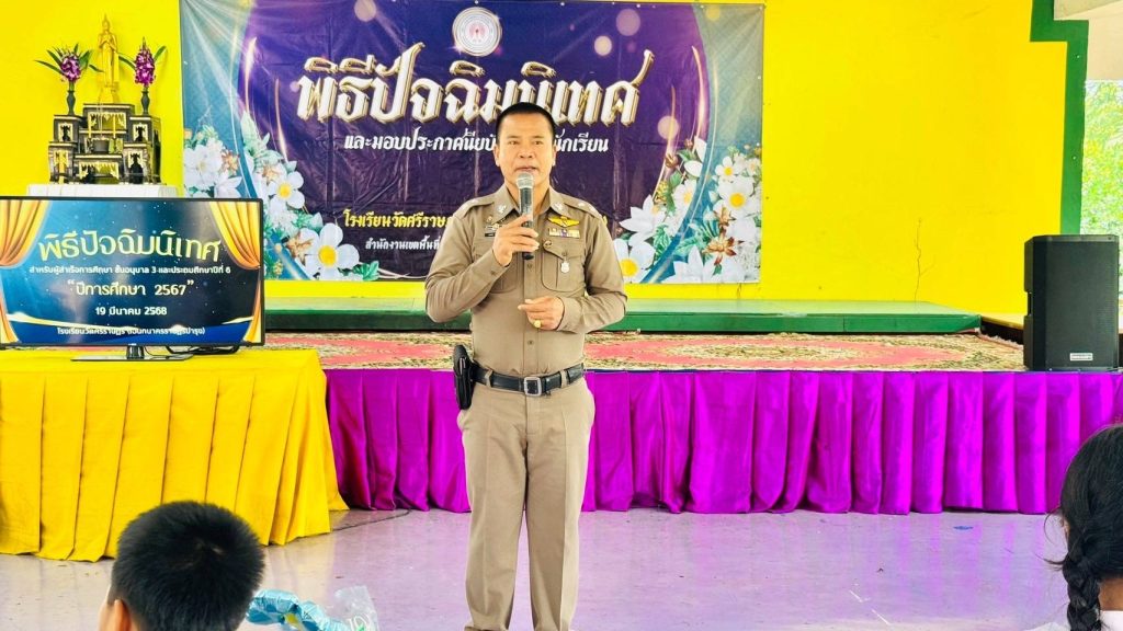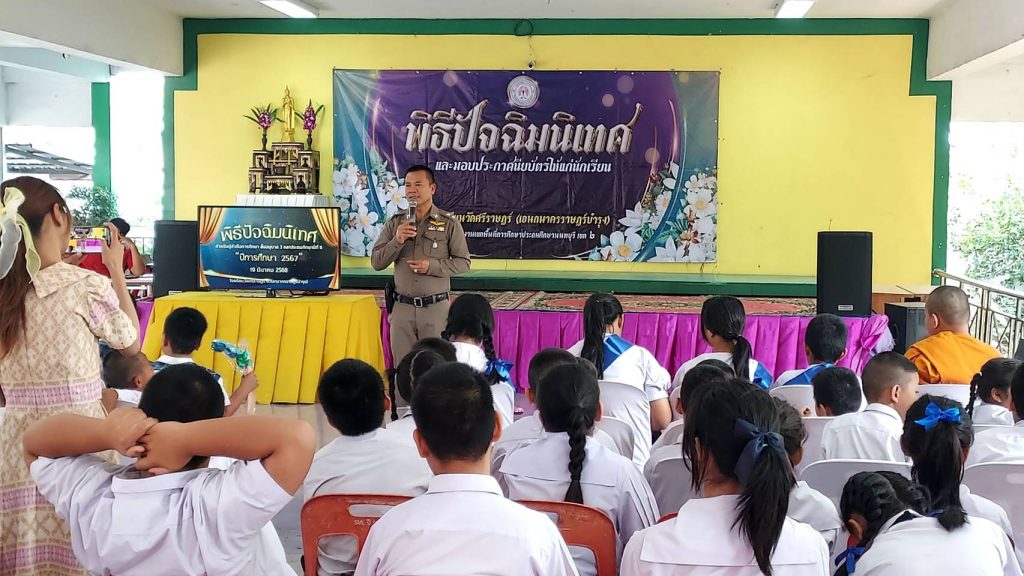 เจ้าหน้าที่ตำรวจ สภ.บางใหญ่และคณะครูบุคลากรของโรงรียนวัดศรีราษฎ์ฯ ได้ร่วมกันมอบใบประกาศเกียรติบัตรโครงการการศึกษาเพื่อต่อต้านการใช้ยาเสพติดในเด็กนักเรียน (D.A.R.E. ประเทศไทย)