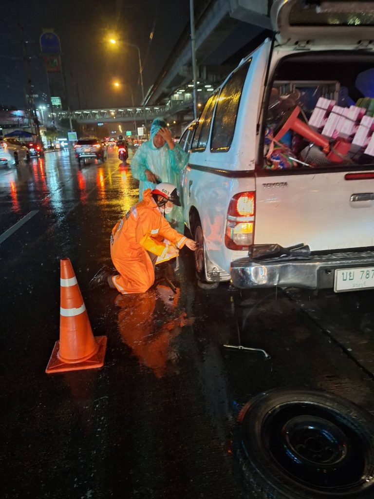 ขณะปฏิบัติหน้าที่ตรวจการจราจรในพื้นที่ซึ่งมีฝนตก ถึงบริเวณช่วงหน้าหมู่บ้านบางใหญ่ซิตี้ ถนนกาญจนาภิเษกขาออกช่องคู่ขนานขวาสุด พบรถกระบะ Toyota สีขาว ทะเบียน บท 7876 สระบุรี ซึ่งลงจากทางมอเตอร์เวย์ สาย m81 บางใหญ่-กาญจนบุรี มาประมาณ 150 เมตร จอดอยู่ จึงได้เข้าสอบถามลุงคนขับพบว่า รถ ว 18 ระบบยาง จึงได้เปิดสัญญาณไฟ วางกรวยยาง เพื่อป้องกันอุบัติเหตุ เมื่อเห็นว่าปลอดภัยแล้วจึงได้ทำการช่วยเหลือคุณลุงเปลี่ยนยางอะไหล่ จนสามารถขับเคลื่อนต่อไปได้ สร้างความประทับใจ พร้อมคำขอบคุณจากลุงเจ้าของรถเป็นอย่างมากและช่วยสร้างภาพลักษณ์ขององค์กรตำรวจในทางที่ดีจากประชาชนที่ผ่านพบเห็น
