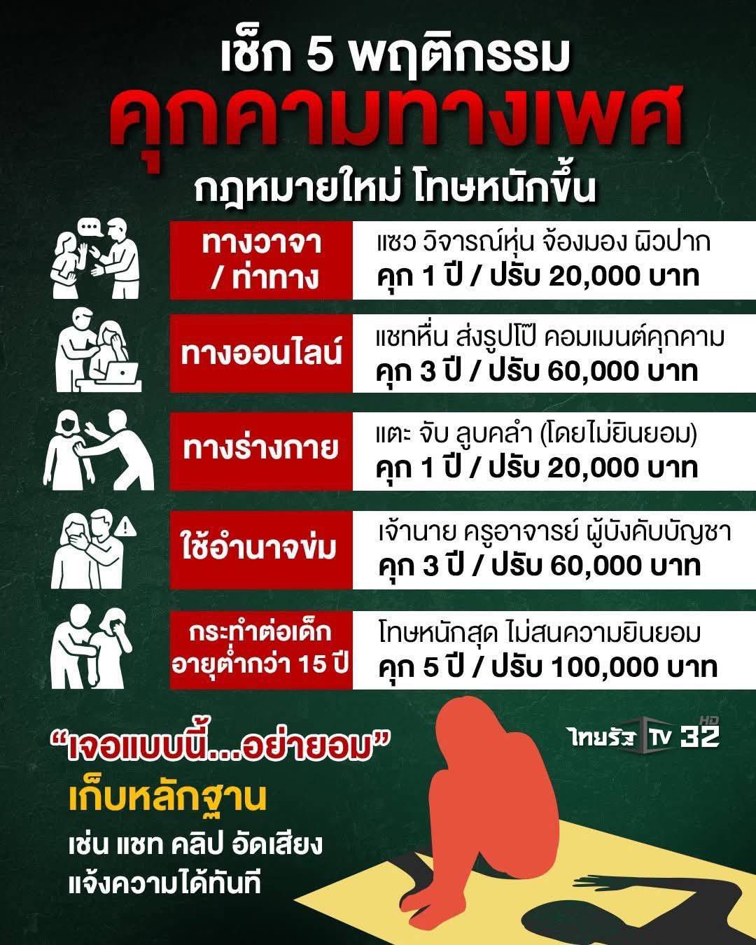 เตือนภัย! พฤติกรรมคุกคามทางเพศมีความผิดตามกฎหมาย กฎหมายใหม่เพิ่มโทษ “คุกคามทางเพศ” ทุกรูปแบบ — ไม่ว่าจะเป็น