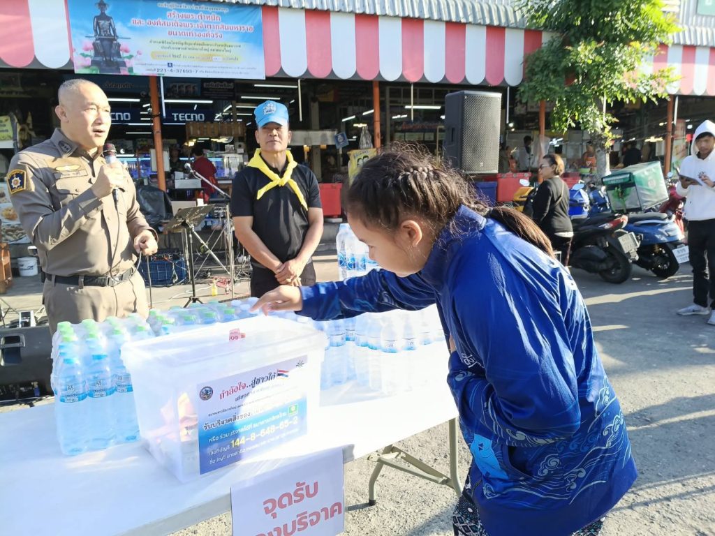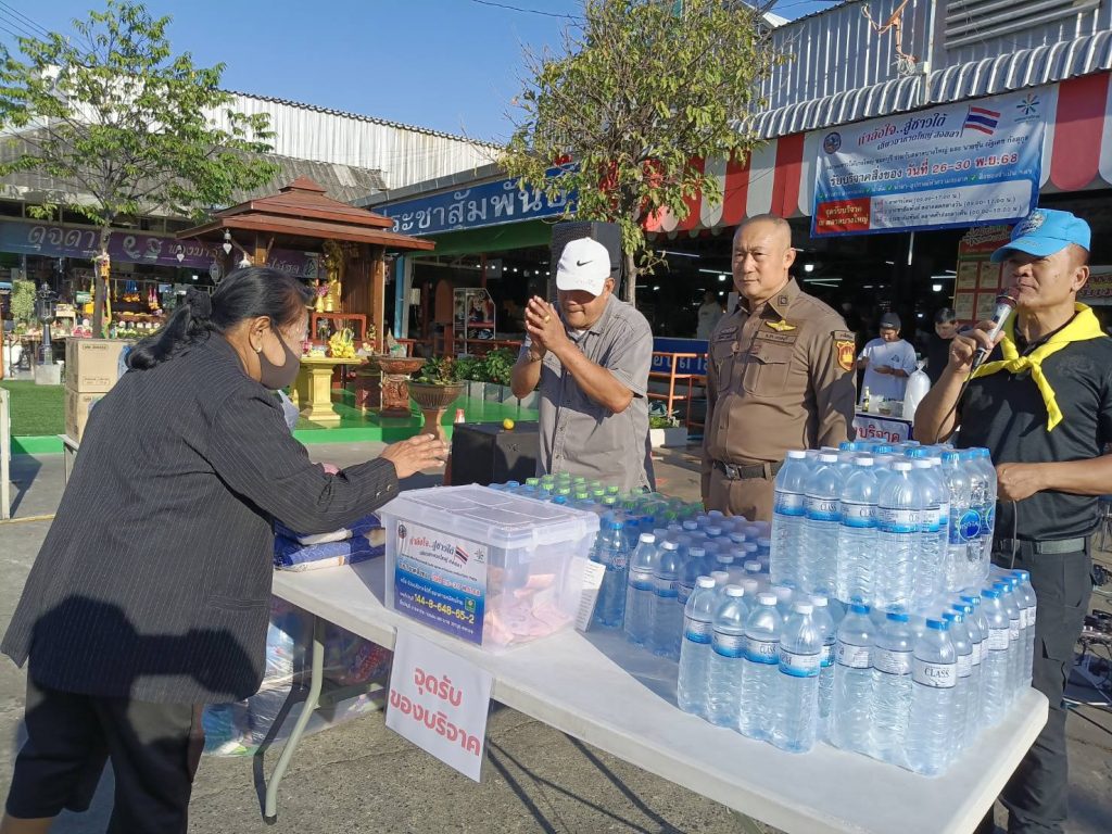 พ.ต.อ.สิรภพ อนุศิริ ผกก.สภ.บางใหญ่ ร่วมกับผู้ประกอบการ ตลาดบางใหญ่ และสมาคมชาวปักษ์ใต้ เป็นตัวแทนส่งมอบเงินบริจาค