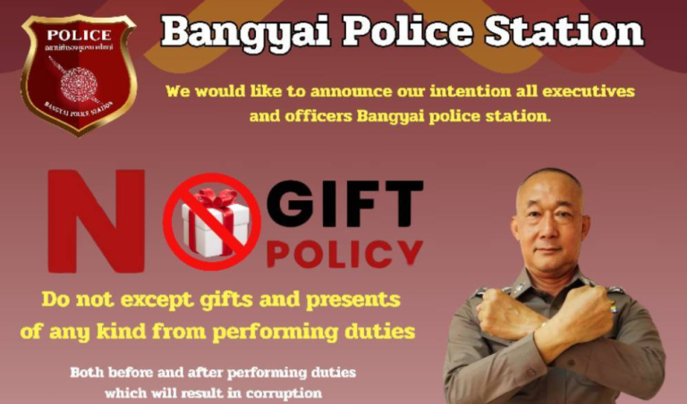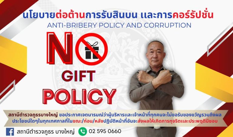- ประกาศสำนักงานยุทธศาสตร์ตำรวจเรื่องเจตนารมณ์ที่จะไม่รับของขวัญหรือของกำนัลทุกชนิดจากการปฏิบัติหน้าที่