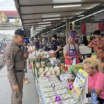 พ.ต.อ.สิรภพ อนุศิริ ผกก.สภ.บางใหญ่ ตรวจเยี่ยมพูดคุยแม่ค้าหน้าตลาดดอนพรม
