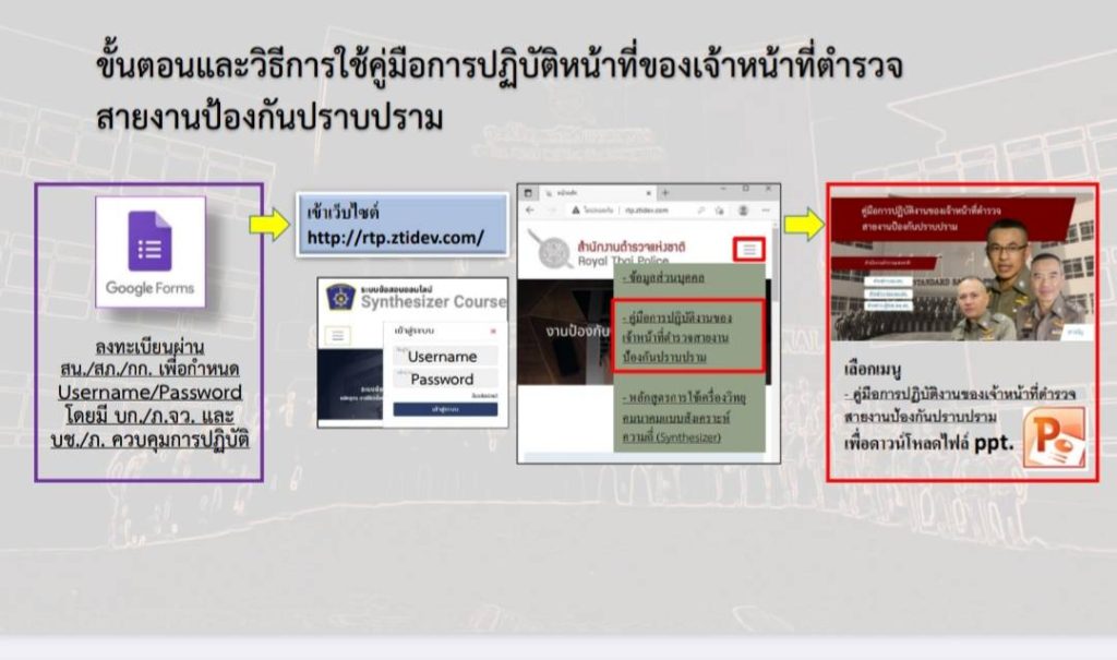 2.1 คู่มือการฝึกอบรมข้าราชการตำรวจที่ปฏิบัติหน้าที่งานป้องกันปราบปรามในสถานีตำรวจ